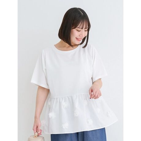 裾に立体的な花モチーフを散りばめた愛らしいトップス