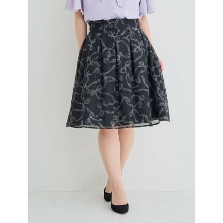 シアー生地にリボンプリントをあしらったトレンド感たっぷりのスカート