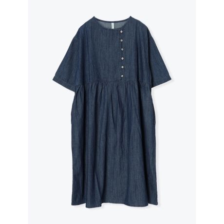 カジュアルなデニム生地で仕立てられたワンピース。