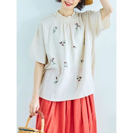 花モチーフのクロスステッチが可憐な表情を演出するチュニック。