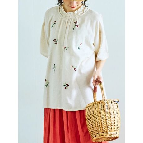 花モチーフのクロスステッチが可憐な表情を演出するチュニック。