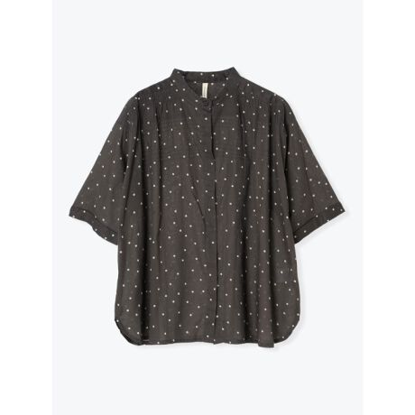 ちいさなドットプリントが可愛らしいバンドカラーブラウス。