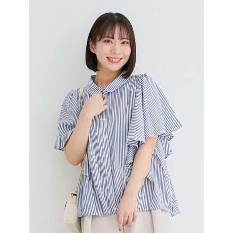 ひらりと軽やかに揺れるフレアスリーブがポイントになったブラウス。