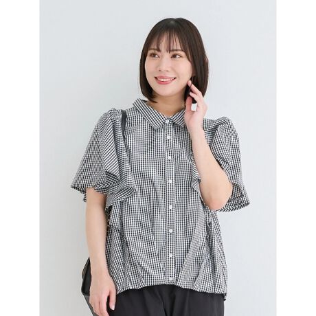 フレアスリーブブラウス(ストライプ柄・チェック柄)