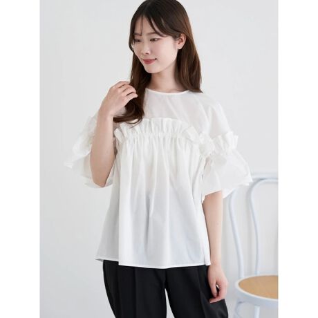 ボリュームのあるフリルが愛らしい表情を演出するブラウス。