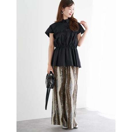 フリルのボリュームがあるので、タイトスカート合わせががおすすめです。