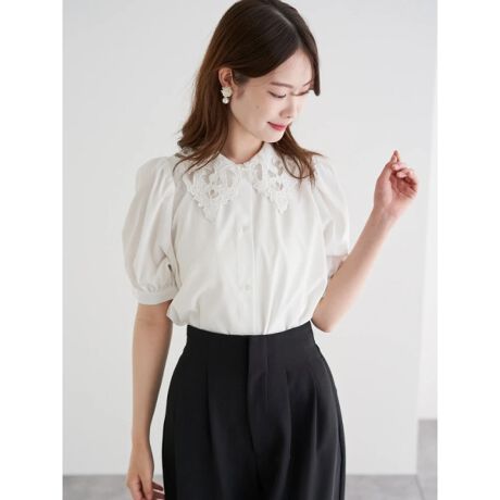 レース襟×さらりとしたブラウス生地