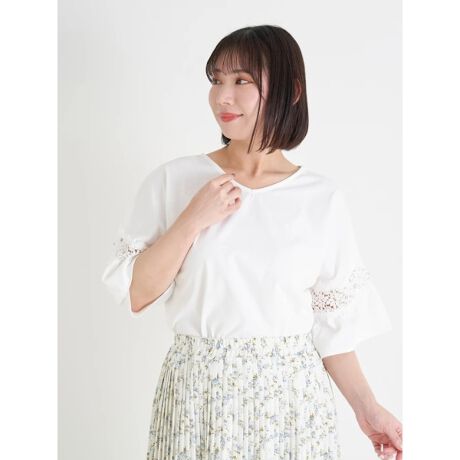 ・袖のレース部分は、ほんのり肌が透けて抜け感をプラス。