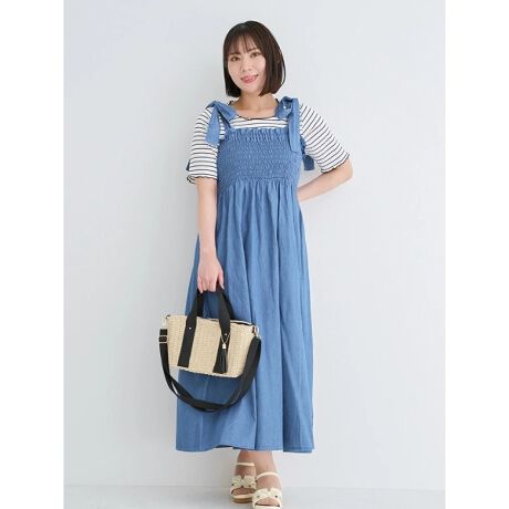 ショルダーリボンデニムワンピース