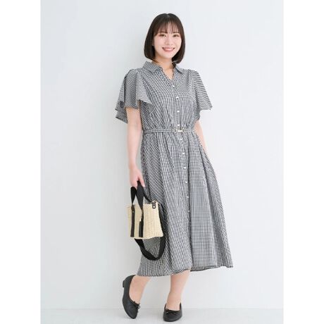 フレアスリーブシャツワンピース(無地・ストライプ柄・チェック柄)