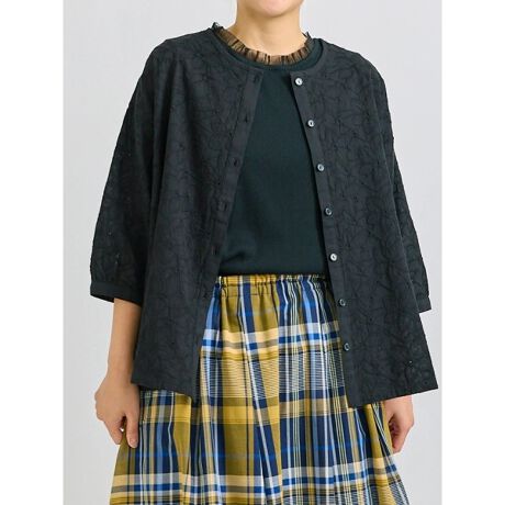 [型番:25410665523]花模様の刺しゅうレースが上品な愛らしさを演出するブラウス。ふっくらと柔らかなフォルムのスリーブも、フェミニンな表情をプラス。シンプルに着るのはもちろん、前を開けてラフに羽織ったりと様々な着こなしのアレンジも楽しめる1着です。Hare no hi/ハレノヒ