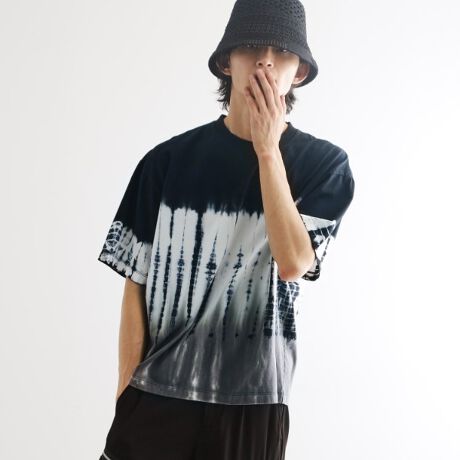 中心を絞り染めした後、裾側を染める工程を経ており、手間のかかる手法で仕上げています。
