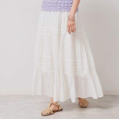 ボリューム感と切替位置が絶妙なバランスのタックティアードスカート。