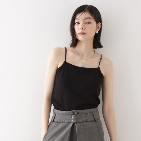 このカップ付きキャミは、デニムやショートパンツとの相性が良く、カジュアルな夏スタイルに活躍します。