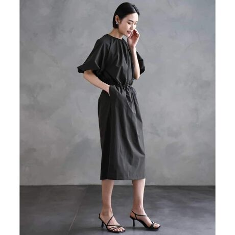 ハリ感と高い伸縮性があるスポーティな素材を活かし、フェミニンになり過ぎないバランスを計算したデザインワンピース。スポーツテイストをミックスさせたウエストのスピンドルで、簡単なサイズ調整もOKなユーティリティデザイン。欲しいシルエットを着る人に合わせられるのもポイントです。40サイズは限定店舗展開です。