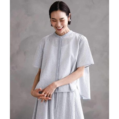 総レースの豪華さが目を引く ブラウス。後ろにボリュームを持たせたリラクシーなシルエットでほど良い抜け感が◎甘すぎないシンプルなデザインで、着まわし力抜群です。ホワイト・ブラックは同色刺繍でシックに、ライトブルーはホワイトの刺繍で爽やかな印象に仕上げています。