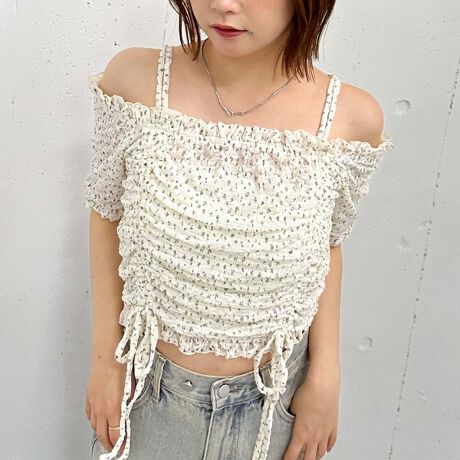 小花柄カットレースオフショルTOPS