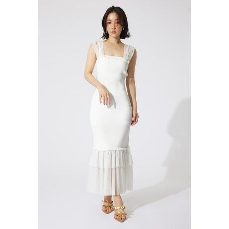 【ショルダーとホルターリボンの2WAY仕様で華やかに決まるチュールコンビニットワンピース】■ポイントその日の気分でチュールのリボンを2WAY仕様に変えられる布帛ドッキングニットワンピース。綺麗めなドライの編み地でボディにフィットし細身効果もあり、目の細かいチュールを裾部分にたっぷり使用し華やかなに決まります。■ディテール2WAY仕様としてショルダーとして後ろ天幅のループにチュールを通し固結びをして垂らす。前天幅から首後ろにホルターとしてリボン結びで結ぶ。とどちらでもその日の気分で着方を変えて楽しんでいただけます。纏うだけで着映えするのでデートやライブ、女子会にもおすすめです。■スタイリングアウターを羽織る際はホルターリボンにして、アウターからリボンを出して着るのがおすすめです。■生地透け感:WHTのみややあり(インナーペチ付き)裏 地:WHTのみあり伸縮性:KNITはあり、布帛のチュールはなし光沢感:なし厚 さ:なし■商品のお気に入り登録お気に入りアイテムの再入荷・在庫1点などの通知を受け取ることができます。[注意事項]※画像の商品はサンプルです。実際の商品と仕様、加工が若干異なる場合があります。※画像の商品は光の照射や角度、お使いのモニター環境により、実物と色味が異なる場合がございます。※着用、お取り扱いの際は、アテンションタグをご確認ください。