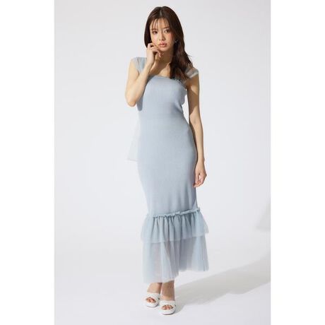 【ショルダーとホルターリボンの2WAY仕様で華やかに決まるチュールコンビニットワンピース】■ポイントその日の気分でチュールのリボンを2WAY仕様に変えられる布帛ドッキングニットワンピース。綺麗めなドライの編み地でボディにフィットし細身効果もあり、目の細かいチュールを裾部分にたっぷり使用し華やかなに決まります。■ディテール2WAY仕様としてショルダーとして後ろ天幅のループにチュールを通し固結びをして垂らす。前天幅から首後ろにホルターとしてリボン結びで結ぶ。とどちらでもその日の気分で着方を変えて楽しんでいただけます。纏うだけで着映えするのでデートやライブ、女子会にもおすすめです。■スタイリングアウターを羽織る際はホルターリボンにして、アウターからリボンを出して着るのがおすすめです。■生地透け感:WHTのみややあり(インナーペチ付き)裏 地:WHTのみあり伸縮性:KNITはあり、布帛のチュールはなし光沢感:なし厚 さ:なし■商品のお気に入り登録お気に入りアイテムの再入荷・在庫1点などの通知を受け取ることができます。[注意事項]※画像の商品はサンプルです。実際の商品と仕様、加工が若干異なる場合があります。※画像の商品は光の照射や角度、お使いのモニター環境により、実物と色味が異なる場合がございます。※着用、お取り扱いの際は、アテンションタグをご確認ください。