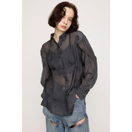 【SHEER TUCKED SH】■POINT:全体にあしらったタックディテールがポイントの涼し気な印象のシアーシャツ。■DETAIL:上品な程よい光沢感のシアー素材を使用し、全体にランダムに取り入れたタックディテールが目を惹きます。リラックス感のあるオーバーサイズの作りでトップスとしても羽織としてもこれからの時期に大活躍。■STYLING:デニムスタイルやミニボトムにもアイテム問わず、デイリーに合わせやすいです。カラーバリエーションが豊富な4色展開となっています。■FABRIC/MATERIAL:上品な程よい光沢感のシアー素材を使用しています。■透け感:あり■光沢感:なし■伸縮性:なし■裏 地:なし※本品は素材の特性上色落ちします。洗濯、クリーニング、着用(使用)時に他の衣類や雑貨、家具類に色移りする事があります。特に汗や雨等で湿った状態では、色落ちが顕著になります。白、淡色との組み合わせは避け、お取り扱いには十分ご注意下さい。本品は、硬く太い糸を使用しています。敏感肌のお客様には着用(使用)の際の摩擦によりかぶれやかゆみを生じる場合があります。肌に異常を感じた時は、ご着用をお控え下さい。着用の際、本品が直接肌に触れる際は、インナー等を組み合わせてご着用下さい。本品はデザインの特性上、畳みや着用でシワになりやすいです。ハンガーでの保管をおすすめします。また軽くアイロンをかけて頂ければシワは整います。[注意事項]※画像の商品はサンプルです。実際の商品と仕様、加工が若干異なる場合があります。※画像の商品は光の照射や角度、お使いのモニター環境により、実物と色味が異なる場合がございます。※着用、お取り扱いの際は、アテンションタグをご確認ください。※一部予約商品につきましては生産上の都合によりお届け予定日や店頭発売と前後する場合もございます。※追加生産商品は、一部の店舗、通販で販売中の場合がございます。予めご了承下さい。