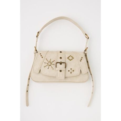 【STUDS HAND BAG】■POINT:スタッズデザインがポイントのハンドバッグ。持つだけでトレンド感のあるスタイリングに。シンプルなコーディネートのアクセントになるアイテムです。■DETAIL:まち付きで収納力があるバックル型のハンドバックです。バックヒモは、調節可能なので、お好みの長さでお持ち頂けます。■FABRIC/MATERIAL:合皮素材を使用しています。※合成樹脂を使用しています。使用回数にかかわらず、時間の経過と共に劣化が生じ、剥離やひび割れ、光沢の減少等が生じます。汚れが付着したままの放置は劣化を早めますのでご注意下さい。過度な摩擦や引っ張りは樹脂の剥離の原因になりますのでお避け下さい。保管は高温多湿を避け、光の当たらない場所に保管して下さい。濃色は色落ちする場合があります。濃淡の配色組み合わせは避けてください。[注意事項]※画像の商品はサンプルです。実際の商品と仕様、加工が若干異なる場合があります。※画像の商品は光の照射や角度、お使いのモニター環境により、実物と色味が異なる場合がございます。※着用、お取り扱いの際は、アテンションタグをご確認ください。※一部予約商品につきましては生産上の都合によりお届け予定日や店頭発売と前後する場合もございます。※追加生産商品は、一部の店舗、通販で販売中の場合がございます。予めご了承下さい。