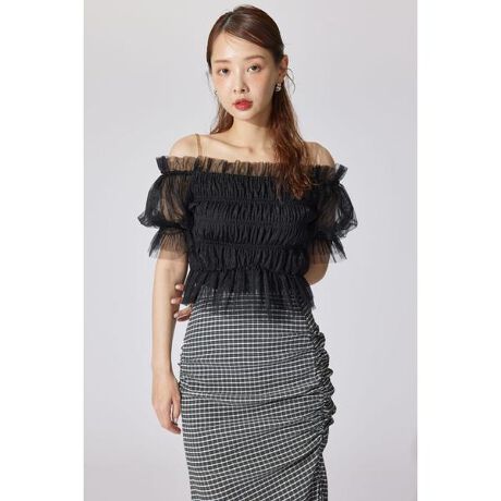 【AKB48 水島美結さん着用】シアーオフショルショートスリーブブラウス