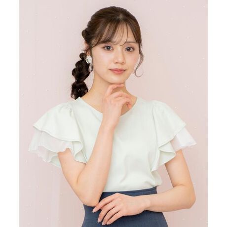 フェミニンにTシャツスタイルを楽しめる、フレアスリーブTシャツ【Design】・ボリュームのあるフレアスリーブが華やかな存在感を放つ、フェミニンムード漂うTシャツ。・袖部分には透け感のあるシアー素材を重ねて、見た目にも涼しげな夏仕様に仕上げました。・肌に優しいコットン100%素材で、デイリーに着たくなる心地よさも魅力!・後ろにはリボンディテールをあしらい、バックスタイルまで抜かりない愛らしさをプラス。・シンプルな無地デザインだからこそ、ボトムスを選ばず着回し力も抜群です♪・ウエストインスタイルでフレア感を引き立てれば、より華やかな印象のコーディネートが完成します。【Fabric】・コットン100%の生地を使用。・袖部分はシアー生地をレイヤードし、透け感が涼し気な仕上がり。・ご自宅でお手入れが出来るのも嬉しいポイント♪・ホワイト、ミント、ブラックの3色展開となります。【Care】手洗い可能