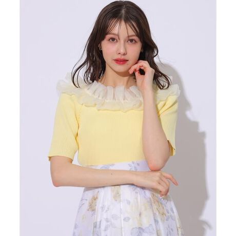 【ふくらみを持たせた立体感のあるチュールフリルが、お顔映りを華やかに見せるオフショル風ニットプルオーバー】【Point】・微光沢のチュールでデコルテを立体的に華やかに着飾る異素材ドッキングニットプルオーバー。・肩先まで肌が出すぎないよう、内側に布を付けてある”オフショル風”デザイン。ほど良く開いたデコルテ周りが、美しくすっきりと上品な肌見せを叶えます。・レーヨンを60%使用しており、ソフトでなめらかな肌触りが着心地よく、長時間の着用もストレスフリーに。・ほど良く厚みのあるリブニットが、肉感は拾いにくく、優しくフィットしながら体のラインをすっきりと見せてくれます。ケア方法:手洗い可能透け感:なし裏地:なし伸縮性:あり光沢感:なし生地の厚さ:中肉