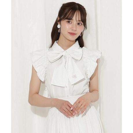 華やかさと上品さを兼ね備えた、リボンタイ付きストライプブラウス。【Design】・顔まわりを華やかに彩るリボンタイ付きのストライプ柄フレアブラウス。・同素材のバックレースアップストライプスカート【品番:20082512100186】と合わせれば、セットアップとしても着用できます!・取り外し可能な太めのボウタイにはWSのロゴ刺繍を施し、フェミニンなアクセントに。・細めのストライプ柄がきちんと感を演出し、上品な印象に仕上がります。・袖口のフレアデザインが肩まわりをさりげなくカバーし、女性らしいシルエットを演出します♪・コンパクトな着丈で、スカートやハイウエストボトムスと相性抜群◎・ボウタイなしでも着映えするデザインで、シーンに合わせた着回しが楽しめます。【Fabric】・さらりとした肌触りで軽い着心地の生地を使用。・ご自宅でお手入れが出来るのも嬉しいポイント♪・ホワイト、サーモンピンク、ミント、ブルーグレーの4色展開となります。【Care】洗濯機洗い可能