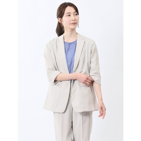 ハンサムな中にも女性らしさが感じられる一つボタンのテーラードジャケットです。スリット入りの7分袖が華奢な手首を演出します。フラップポケット付きなので利便性にも優れています。普段使いからオフィスカジュアルまでオンオフ兼用で着回しが可能です。