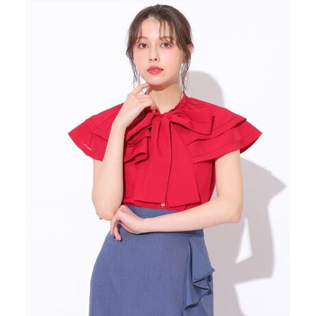 ラッフルカラーボウタイブラウス