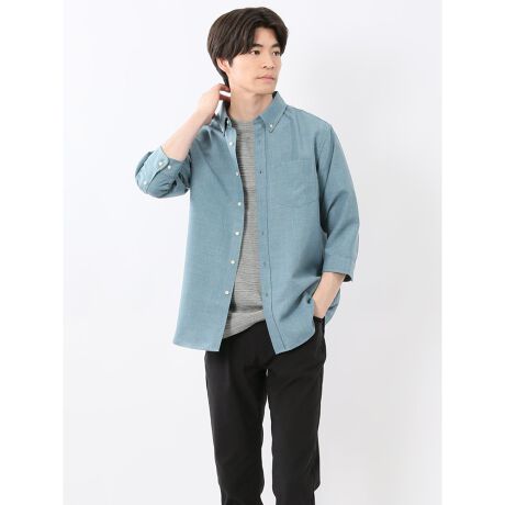 【吸水速乾】【マシンウォッシャブル】タカキュー TechLinen ボタンダウン 7分袖シャツ