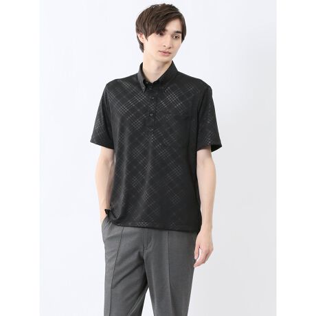 夏場のクールビズに大活躍してくれる、プルオーバータイプのビズポロです。エンボス加工のバイアスチェック柄と衿腰にあしらった別布(幾何学模様)がポイント。衿型は衿立ちが良く、オフィスカジュアルにもぴったりなボタンダウンを採用しています。台衿を付けたドレスシャツ仕立てで、キチンと感のあるルックスと快適な着心地を兼備した一枚です。