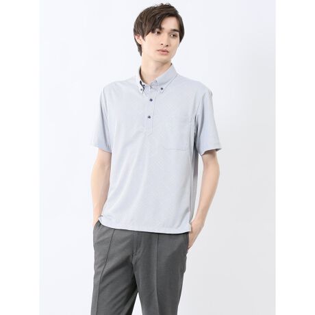夏場のクールビズに大活躍してくれる、プルオーバータイプのビズポロです。エンボス加工のバイアスチェック柄と衿腰にあしらった別布(幾何学模様)がポイント。衿型は衿立ちが良く、オフィスカジュアルにもぴったりなボタンダウンを採用しています。台衿を付けたドレスシャツ仕立てで、キチンと感のあるルックスと快適な着心地を兼備した一枚です。