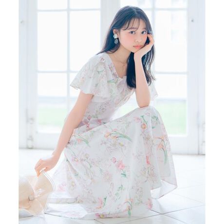 ボタニカルフラワーフレアスリーブワンピース