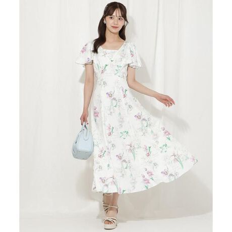 ボタニカルフラワーフレアスリーブワンピース