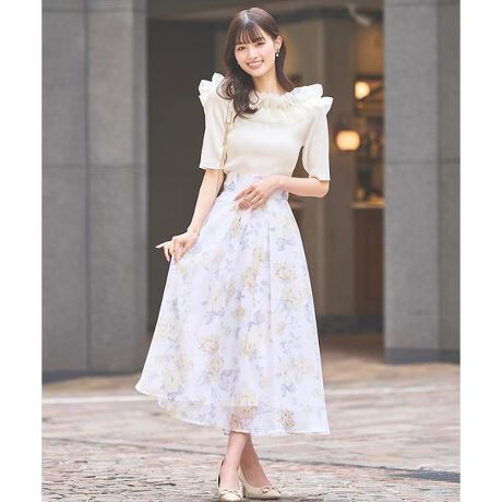 【優しげなトーンで女性らしく描かれた花柄がエレガントな品の良さ薫る、SWINGLEオリジナルフラワー柄スカート】【Point】・シアー素材にプリントされた大胆な大花柄が涼しげに映える、水彩タッチのSWINGLEオリジナルフラワー柄スカート。・裾に向かってリッチに広がるエアリーな揺れ感たっぷりのフレアシルエットが、歩き姿を女性らしくエレガントに仕立ててくれます。・品の良い華やかさを放つ、光を反射して微かに煌めく微光沢生地。・バックレースアップで後ろ姿まで抜かりなく。体型に合わせてウエストを絞ることができ、誰でもすっきりとした美しいシルエットを楽しめます。ケア方法:手洗い可能透け感:あり裏地:あり伸縮性:なし(ウエスト部分:後ろゴムあり)光沢感:微光沢生地の厚さ:薄手