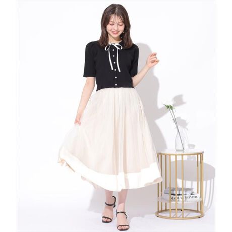 【上品な光沢感のサテン生地とチュールのドッキングが大人な抜け感漂うギャザーフレアスカート】【Point】・トレンドのチュールスカートを、気品ある着こなしに仕立てるサテン生地ドッキングスカート。・エクリュは無地のチュールで上品に。同系色で描く小さめのドット柄は、カジュアル過ぎず品の良い華やかさをプラスします。・バックレースアップで後ろ姿まで抜かりなく。ウエストを体型に合わせたぴったりサイズに調節して着用いただけます。ケア方法:ドライクリーニング透け感:なし裏地:あり伸縮性:なし(ウエスト部分:後ろゴムあり)光沢感:微光沢生地の厚さ:中肉