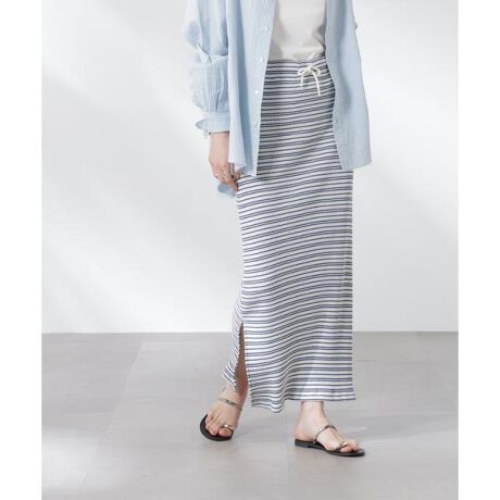 リラックスムードが漂うリブ素材のロングスカート。女性らしいタイトなシルエットながらも伸縮性ある素材で着心地が良く、デイリーの着回し、休日スタイル、旅行など幅広いシーンに活躍しそう。