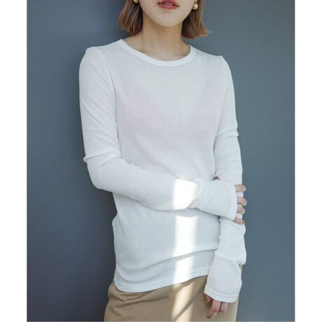 着用感:透け感もちょうど良く、袖と着丈が長めなので、重ね着にぴったり。