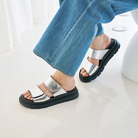 甲をしっかり支える太めストラップで、安定感のある履き心地。