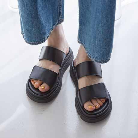 甲をしっかり支える太めストラップで、安定感のある履き心地。