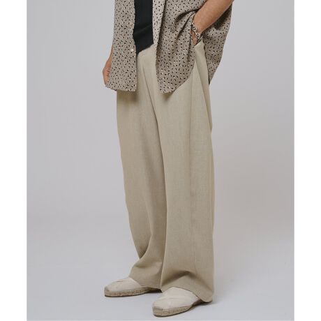 ・ウエスト後ろ部分にはゴムを配したイージー仕様で、見た目の美しさと快適な穿き心地を両立。ストレスフリーな着用感を提供。