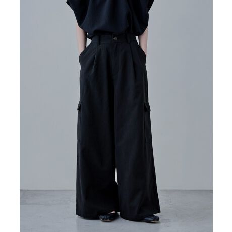 ワークテイストな雰囲気を綿100%のツイル地に落とし込んだワイドカーゴパンツ。