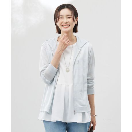 ■デザイングラデーションのように編み上げたボーダー柄が目を引く、軽やかに羽織れシアーライトパーカー。シルエットはすっきりと仕立てつつ、リラックス感も程よくキープ。カジュアルでありながら都会的なムードを演出できるのが魅力です。今季はきれい目なボトムスと合わせて、大人の洗練スタイルを楽しむのがおすすめ。羽織るだけでこなれた印象が手に入る、万能なアイテムです。