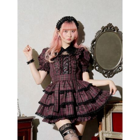 たっぷりのフリルとレースアップ、ボリュームのあるティアードフリルが華やかな印象を演出してくれます。