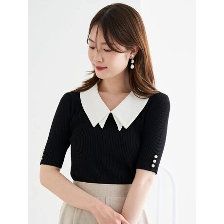 ・袖にはボタンのアクセントをプラス。フィットするリブニットで、シルエットもすっきりと見せてくれます。