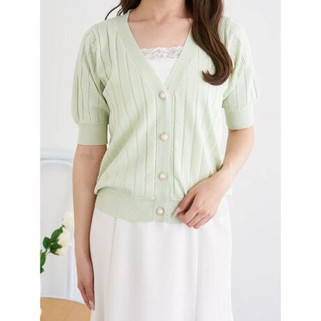 飾りボタンがアクセント♪着るだけで爽やか透かしラインカーディガン。