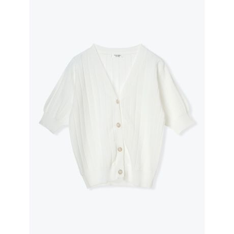 飾りボタンがアクセント♪着るだけで爽やか透かしラインカーディガン。