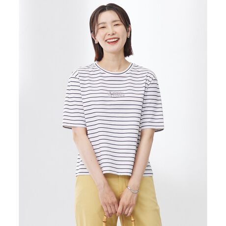 ■デザインこだわりのワンポイントをあしらったロゴTシャツ。ロゴには、「本質を知る」という意味があり、歴史あるブランドであるからこそ、時代の空気感を取り入れつつも伝統・本質を大切にしながらお客様にファッションを楽しんでいただきたいという気持ちが込められています。ロゴデザインは刺繍とプリントの組み合わせることで、程よい存在感を持たせながらも、カジュアル過ぎず上品な印象に仕上げました。さらに、短めの丈感がトレンドを押さえ、バランスよく着こなせるTシャツです。